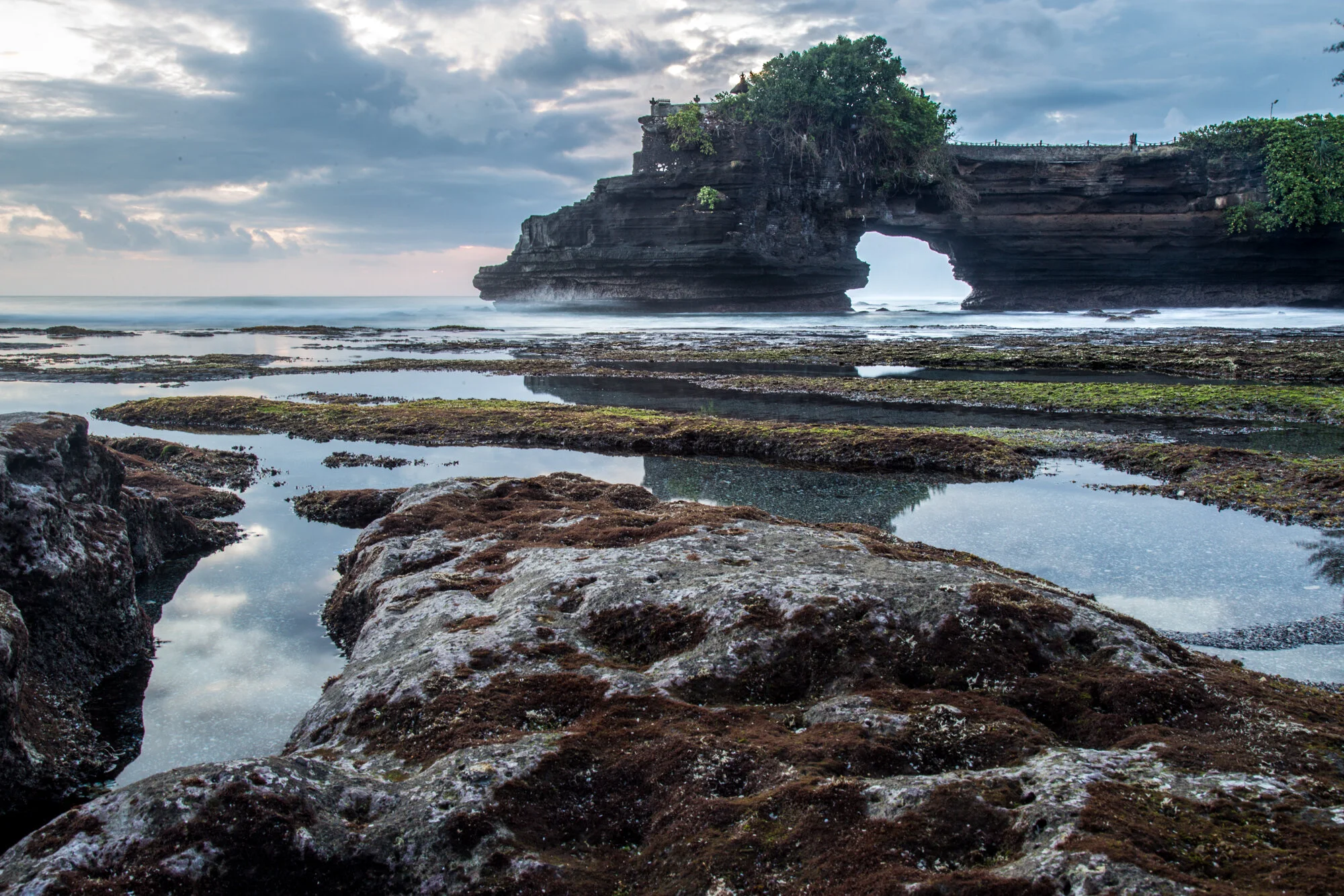 Not wanting to miss a single sunset, it was time to head back west and check out Tanah Lot. The ride over included many Balinese backroads through rice patties and made for an enjoyable ride. Tanah Lot is one of the most popular temples in Bali and because of such, is overrun with tourists. I have heard stories of the place being very natural before the internet made it Insta-Famous. It is now a maze of souvenir and food vendors as you make your way down to the cliffs along the beach. This, however, doesn’t make it any less awesome. I found a spot to launch the drone and get some video and photos from the air (I found out a few days later that they will charge you a video fee if they see you flying). There were so many people that had gathered to watch the sunset and take pictures. Since it was low tide, everyone was out exploring the tide pools.
